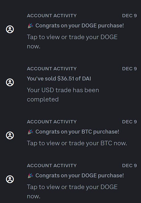 (Screenshot from my Coinbase alerts, below. https://www.coinbase.com/home)